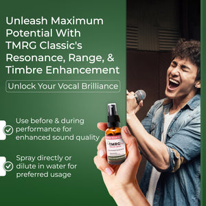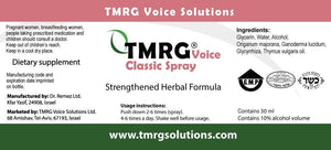 Common benefits of the TMRG Classic Drops: One benefit of the vocal spray is their support in the natural healing process of the vocal folds in recovering from vocal injury. The respiratory system is cleared, the allergic waste, including any thick phlegm, will be greatly lessened. And, as a result, there is also a reduction of inflammation, redness, swelling and allergies.