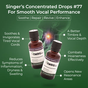 Recommendation: Singers are advised to use a generous amount of the TMRG Classic Spray (#2) OR TMRG Synergy Oils (#6) before every show together with the Concentrated Classic (#77).