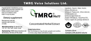 Common benefits of the TMRG Concentrated Classic (#77): The Concentrated Classic assists the natural healing process of the vocal folds in recovering from vocal injury. Further, the Concentrated Classic helps clear the respiratory system and folds from any unwanted allergic waste including thick phlegm. Another benefit presents itself in the reduction of inflammation, redness, swelling and allergies. The Concentrated Classic has been known to deliver