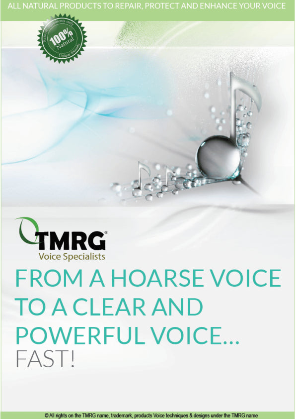 Get our free Vocal Tips and Product Catalog. It is filled with valuable tips on how to use your voice properly and how to best combine TMRG products into your vocal regime.