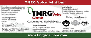 Suitable for:Anyone who is new to TMRG and needs a quick fix for relieving hoarseness and minor vocal discomfort as a result of vocal fatigue and symptoms of inflammation (soreness and feeling like the voice is tender), thick phlegm and feeling the need to clear the throat. It is one of our most successful products among singers. It works well and is easy to use. It's a real voice enhancer!